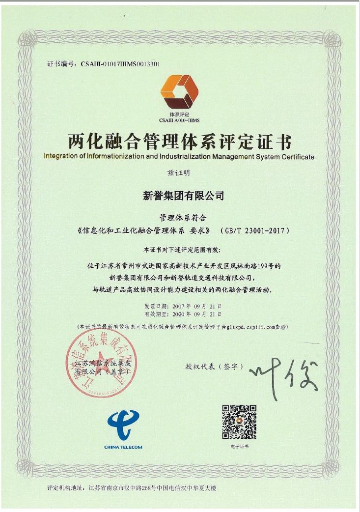 近日,從國家工業(yè)和信息化部傳來喜訊,新譽集團正式通過“兩化融合管理體系”認(rèn)證評定。這也標(biāo)志著新譽集團在瞬息萬變的工業(yè)化和信息化道路上邁出了堅實的一步。