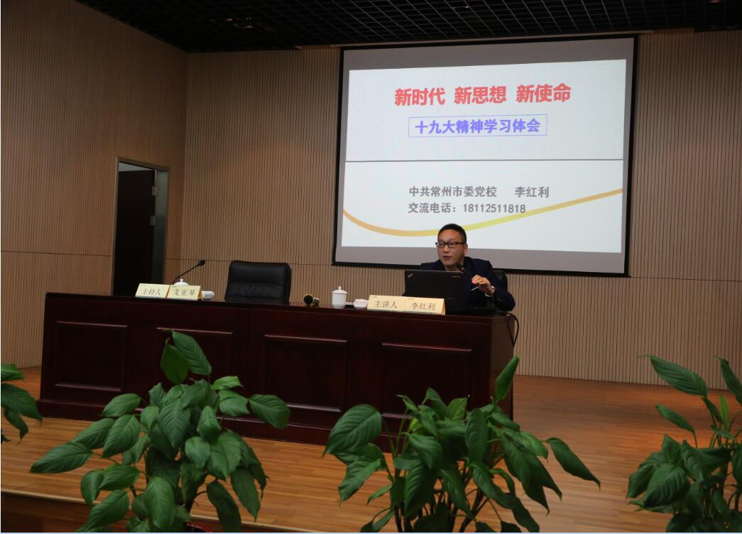 李紅利教授多年從事馬克思主義理論和黨史黨建研究,曾多次受邀為市委常委會作專題輔導報告,受到市領導及各界黨員干部和群眾的一致好評。此次學習會上,李教授做了《新時代、新思想、新使命》專題輔導報告,深入分析了關于黨的十九大精神學什么、怎么學,詳細介紹了黨的十九大基本情況、理論貢獻和政策預期。