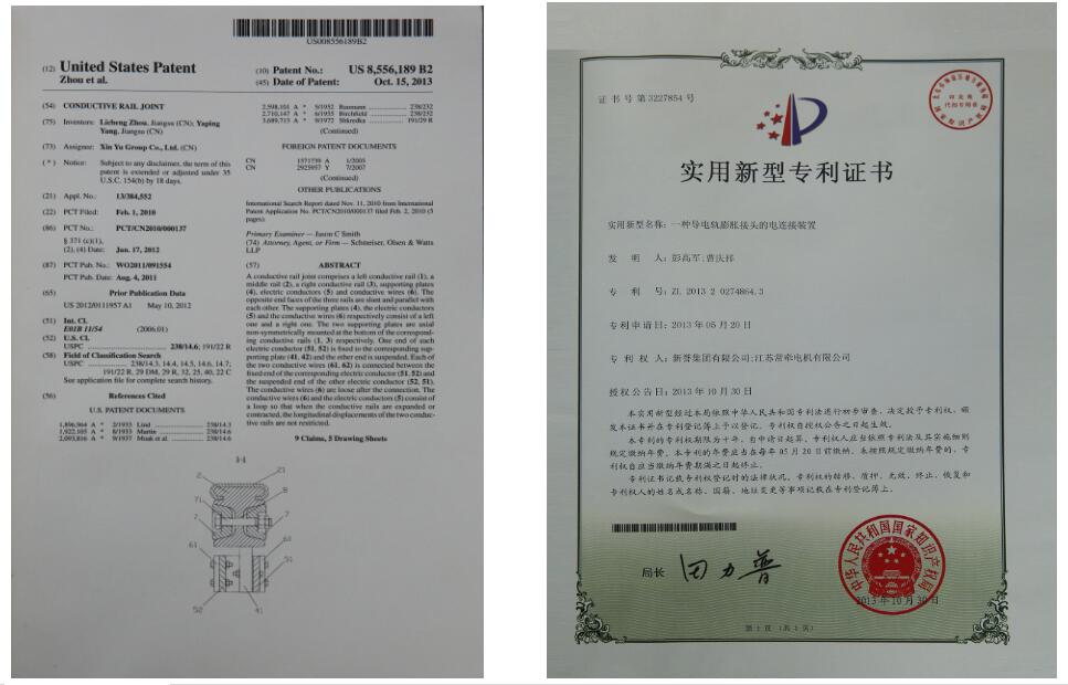 JHFG系列鋼鋁復合導電軌運用獨特的焊接技術使鋼帶和鋁軌完美復合,具有結合力大、接觸電阻小和防腐能力強等優點。經過10年的努力,公司先后開發出JHFG18T、JHFG18A、JHFG16T和JHFG16A四款產品,截止目前已經獲得授權發明專利2項、美國發明專利1項、實用新型專利2項以及外觀專利1項。同時作為行業引領者之一,我們還參與了住房和城鄉建設部起草的CJ/T 414-2012《城市軌道交通鋼鋁復合導電軌技術要求》標準的編制工作。