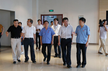 7月19日下午,常州市委常委、組織部部長周昌明一行到新譽(yù)集團(tuán)調(diào)研指導(dǎo)非公企業(yè)黨建工作,武進(jìn)區(qū)委常委、組織部長華飛,區(qū)委常委、武進(jìn)國家高新區(qū)黨工委副書記、管委會副主任石旭涌等領(lǐng)導(dǎo)陪同調(diào)研。集團(tuán)總經(jīng)理?xiàng)蠲鞑?、黨委副書記杜柏坤、集團(tuán)辦主任宦慧燕等集團(tuán)領(lǐng)導(dǎo)熱情接待。