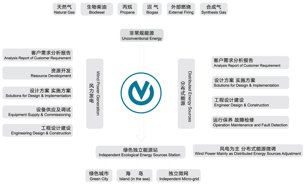 分布式能源業(yè)務主要包括分布式能源項目的開發(fā)、投資和建設(shè),以及分布式能源站配套設(shè)備的生產(chǎn)和安裝。主要推廣燃氣熱電聯(lián)供技術(shù),通過能源的梯級利用,可使能源總利用效率達到80%以上。適用于城市綜合體、醫(yī)院、賓館、工業(yè)園區(qū)、大學城等熱負荷區(qū)域。